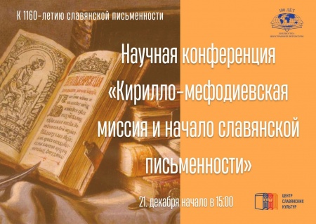 21 декабря 2022 года в Центре славянских культур Библиотеки иностранной литературы им.М. И. Рудомино пройдет Научная конференция «Кирилло-мефодиевская миссия и начало славянской письменности»