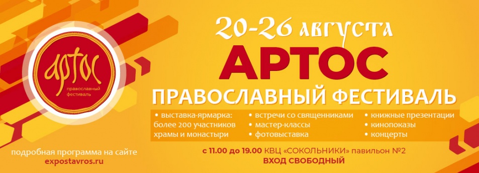 «Подвижники нашего времени» — тема XVIII Международного фестиваля «Артос», который пройдет в столичном КВЦ «Сокольники» 20-26 августа 2019 года. Организаторы предлагают поразмышлять о феномене старчества и роли духовного руководства в жизни современного православного христианина.