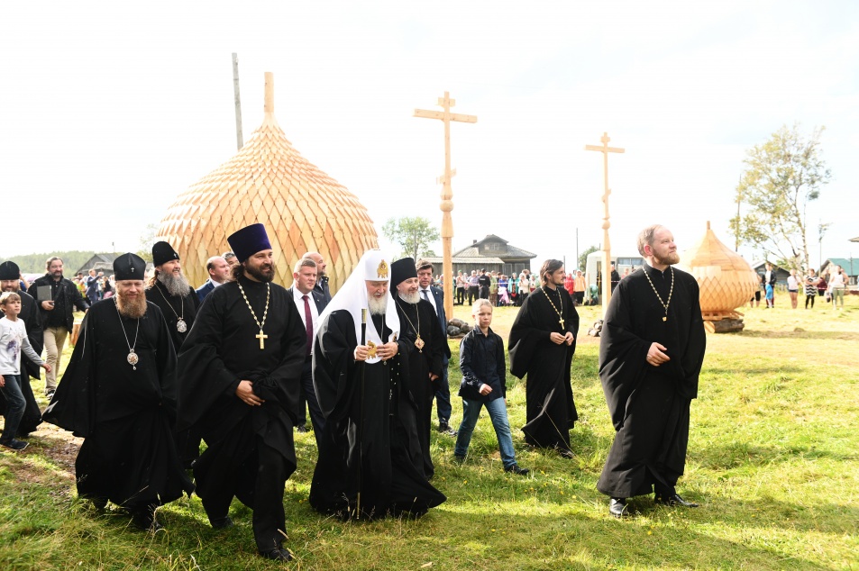 Святейший Патриарх Кирилл осмотрел деревянные храмы в деревнях Ворзогоры и Подпорожье Архангельской области