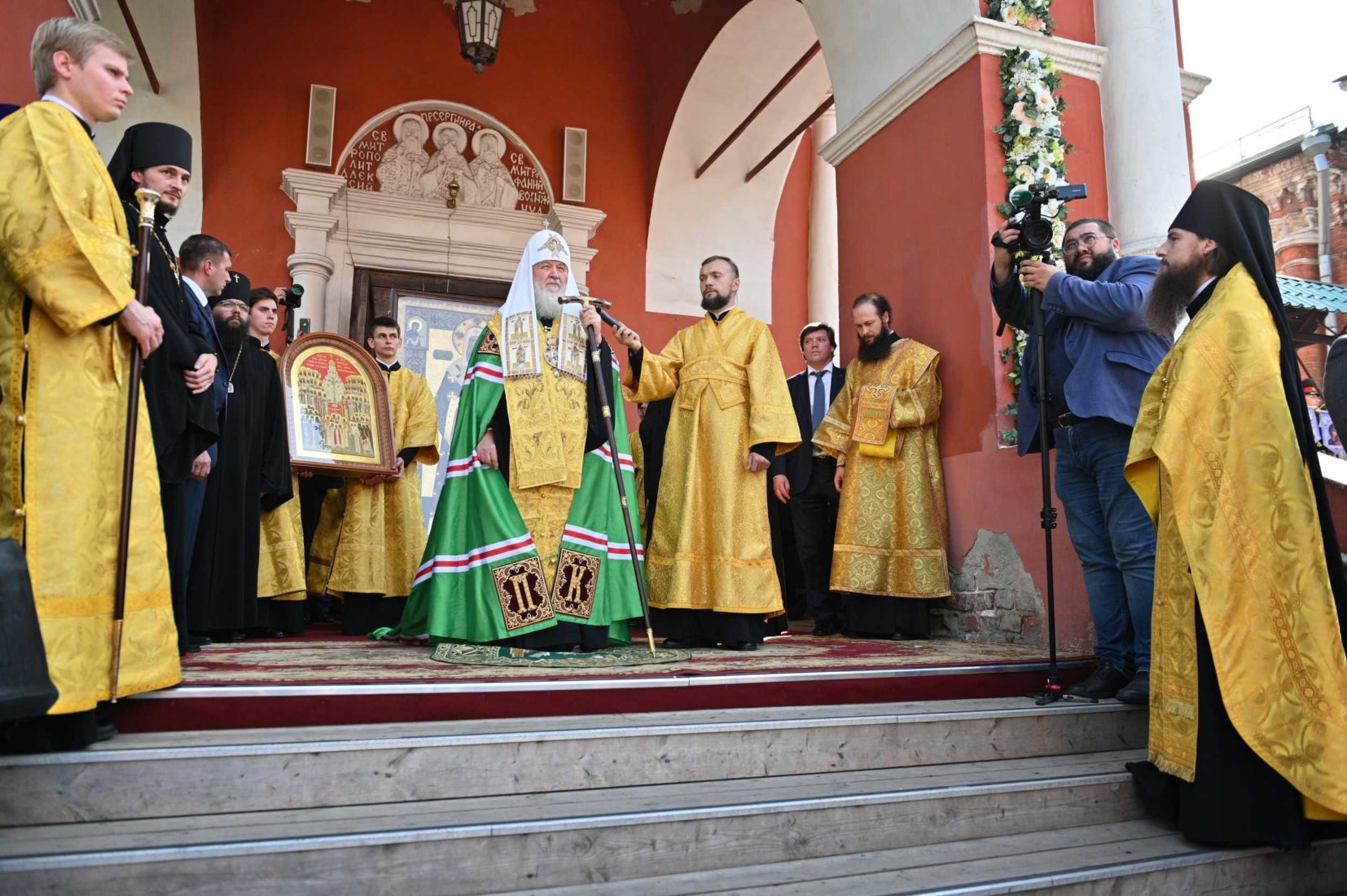 6 сентября 2019 года, в праздник перенесения мощей святителя Петра, митрополита Киевского, Московского и всея Руси, чудотворца, Святейший Патриарх Московский и всея Руси Кирилл на ступенях храма преподобного Сергия Радонежского Высоко-Петровского ставропигиального мужского монастыря г. Москвы совершил молебен святителю Петру у чтимого образа московского чудотворца.