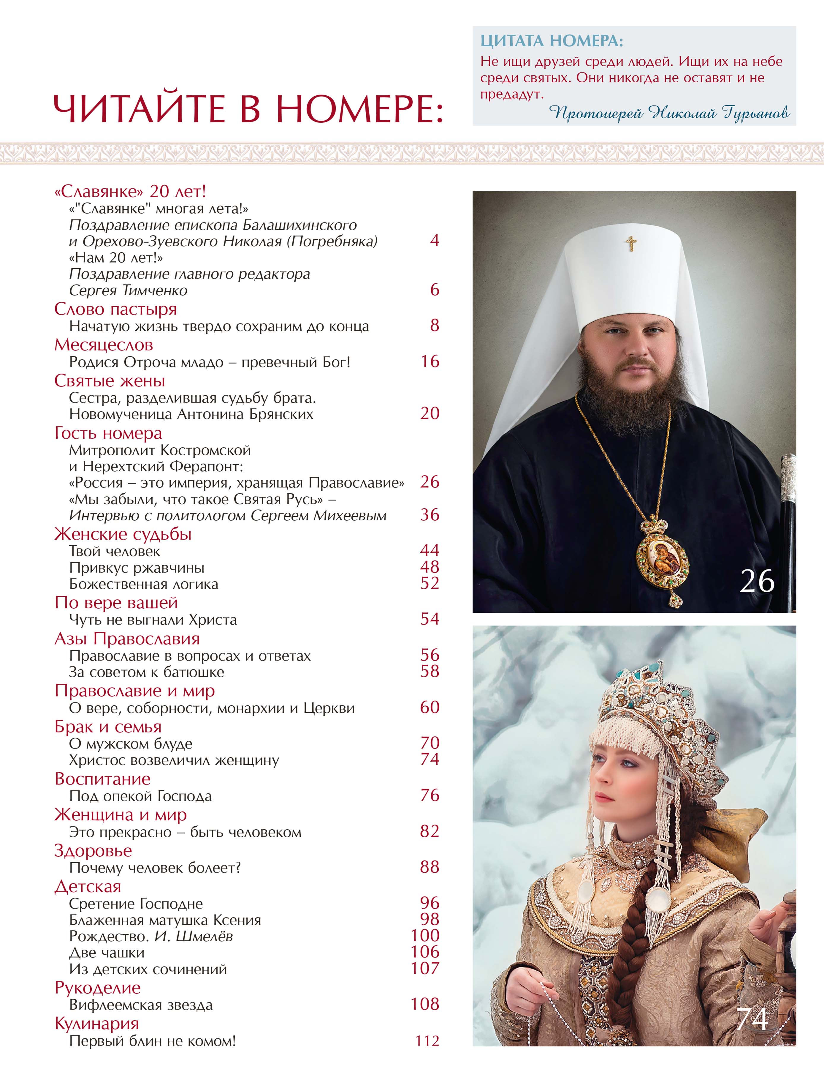 Также читайте в журнале наши традиционные рубрики: «Святые жены», «Женские судьбы», «По вере вашей», «Азы Православия», «Детская», «Рукоделие» и «Кулинария».