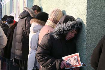 Люди несут цветы и, несмотря на морозы, стоят в