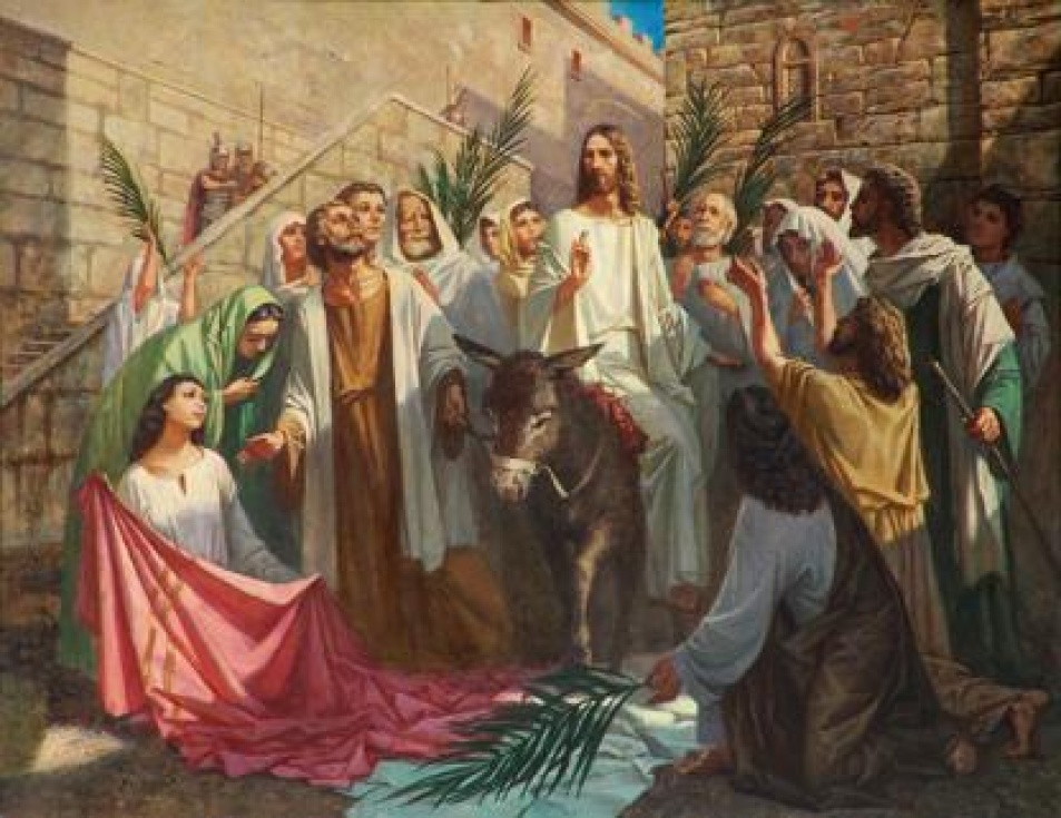 В этот день Иисус на ослике — символе кротости и миролюбия — торжественно въехал в ворота Иерусалима. Собравшиеся люди приветствовали его как Мессию, Спасителя, призванного исправить мир, внести в него равновесие и благополучие. Они размахивали пальмовыми ветками, расстилали перед Ним свои одежды, пели: «Осанна (спасение) сыну Давидову! Благословен грядущий во имя Господне! Осанна в вышних!»